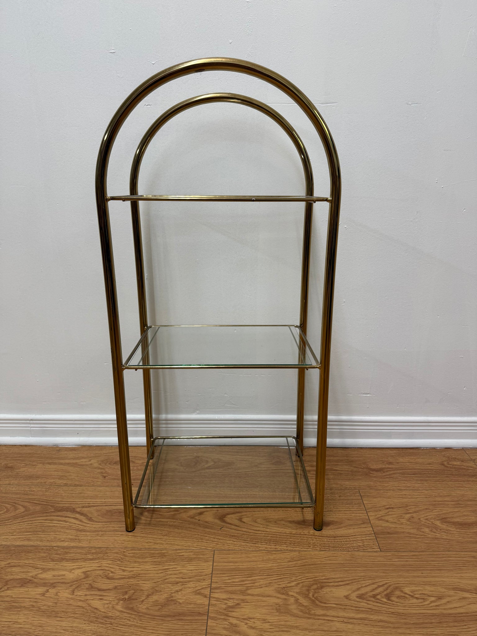 faite de métal et plaquée de laiton, avec 3 tablettes en verre